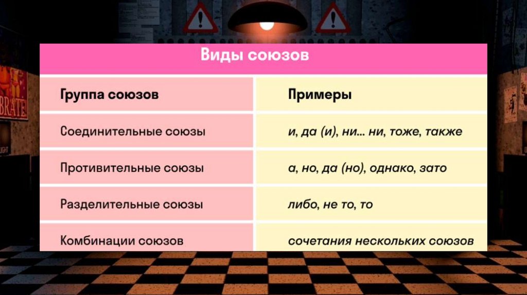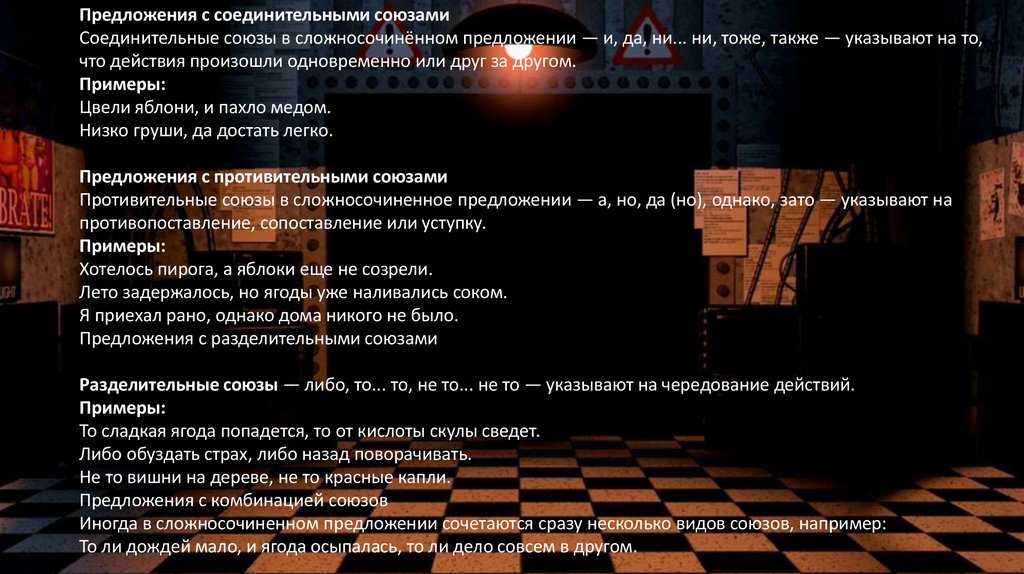 да, также и т. д.), противительными (а, но, зато и т. д.), разделительными (либо, то… то, не то… не