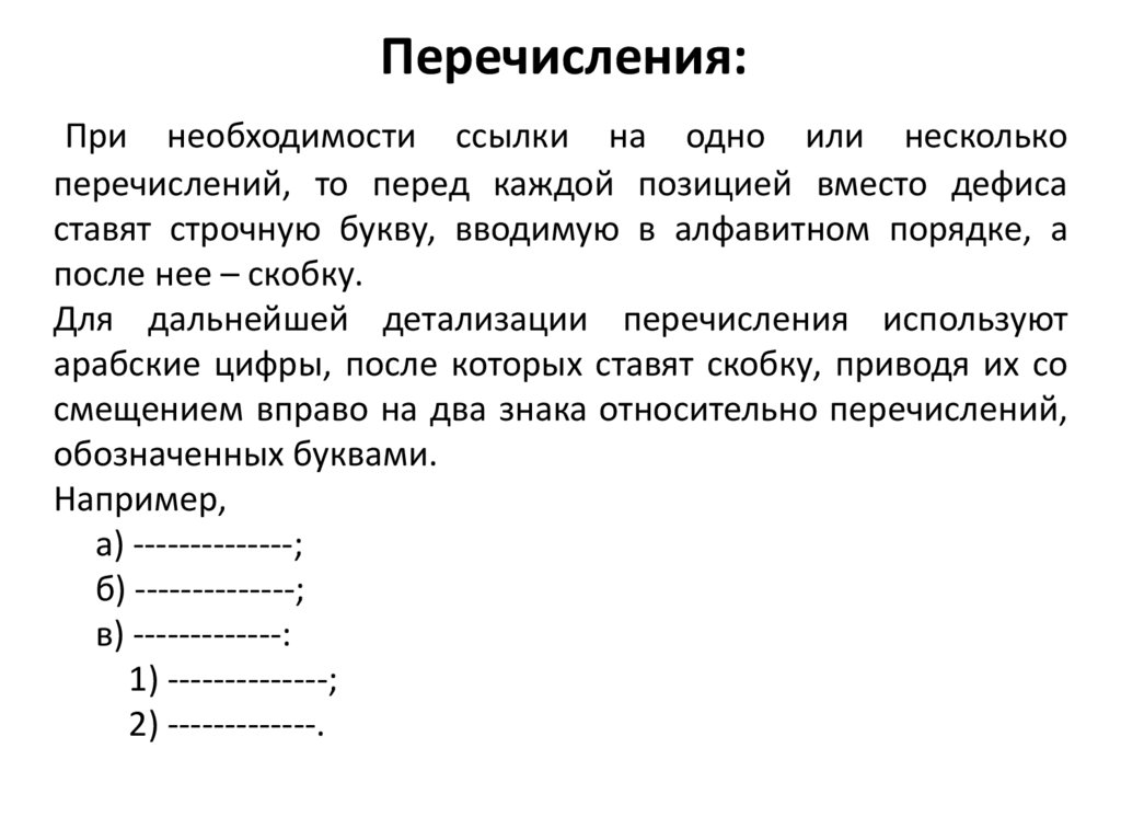 При необходимости ссылки на одно или несколькоперечислений, то перед каждой позицией вместо дефиса