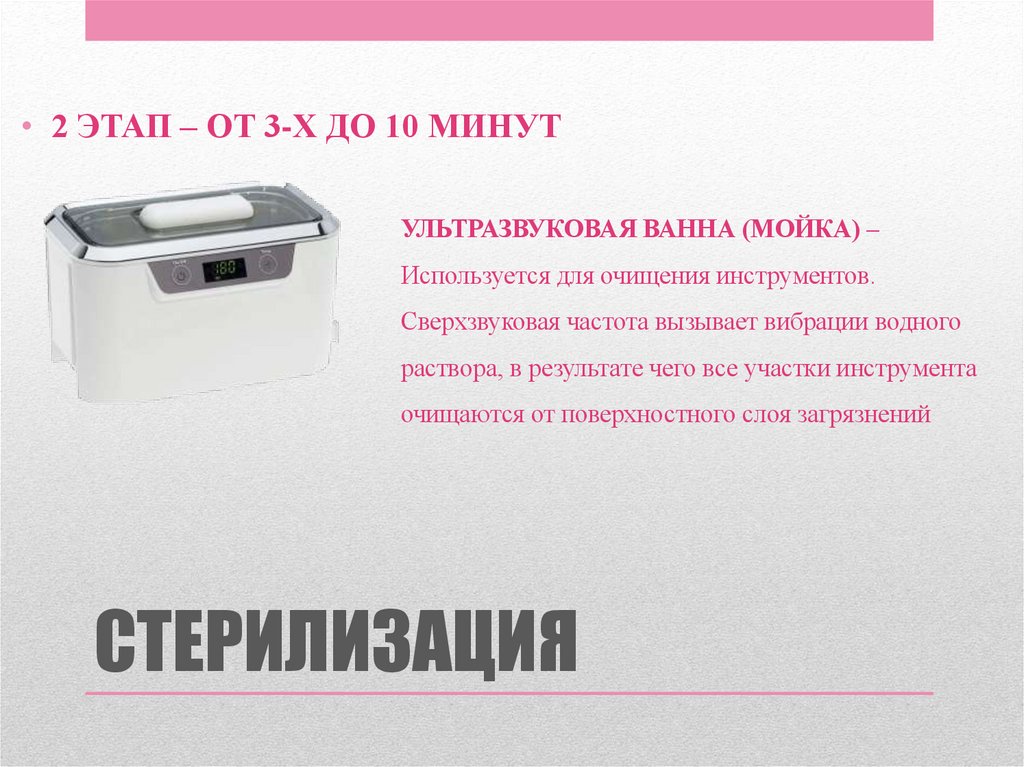 • 2 ЭТАП – ОТ 3-Х ДО 10 МИНУТУЛЬТРАЗВУКОВАЯ ВАННА (МОЙКА) –