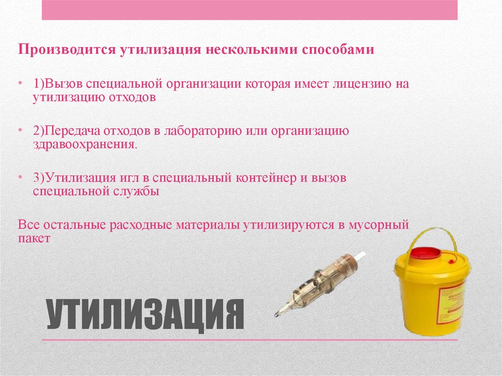 Производится утилизация несколькими способами• 1)Вызов специальной организации которая имеет лицензию на