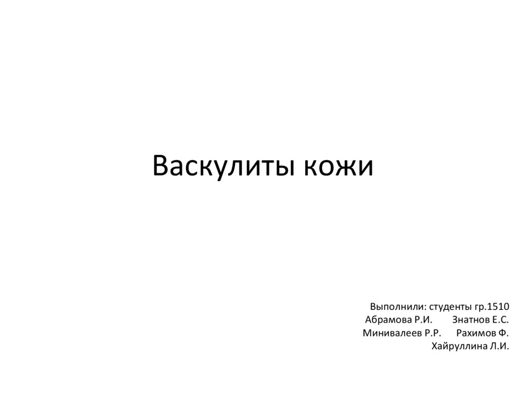 Васкулиты кожиВыполнили: студенты гр.1510