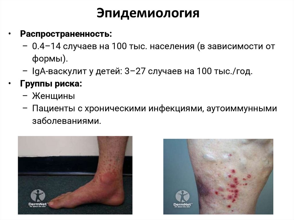 – IgA-васкулит у детей: 3–27 случаев на 100 тыс./год.