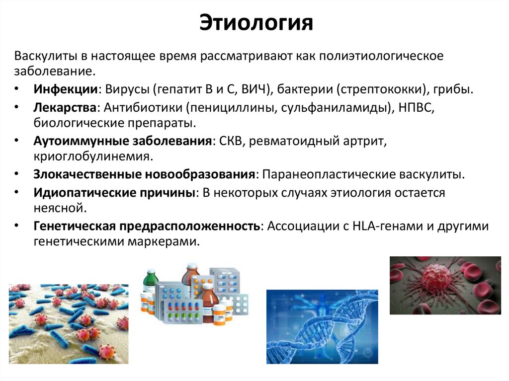 ЭтиологияВаскулиты в настоящее время рассматривают как полиэтиологическое