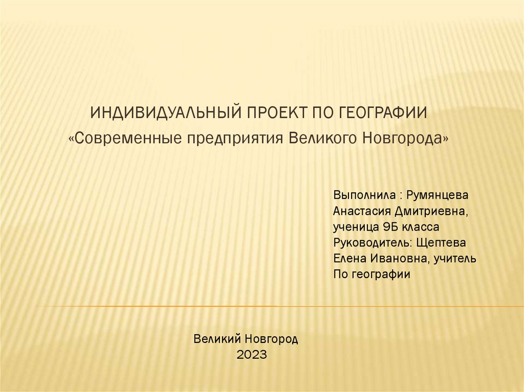 ИНДИВИДУАЛЬНЫЙ ПРОЕКТ ПО ГЕОГРАФИИ«Современные предприятия Великого Новгорода»