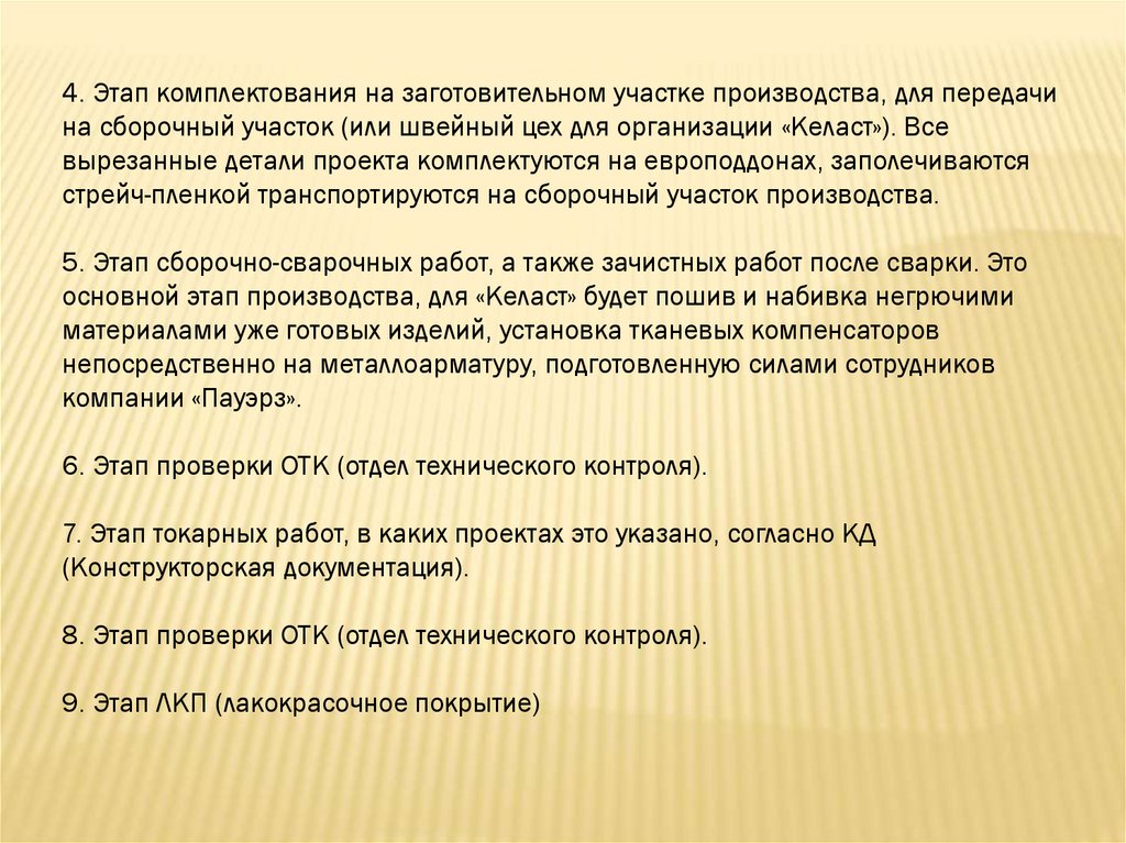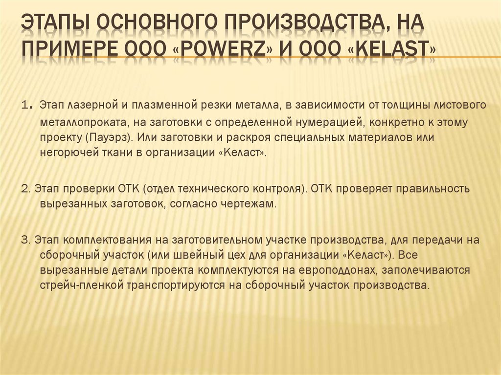 ЭТАПЫ ОСНОВНОГО ПРОИЗВОДСТВА, НАПРИМЕРЕ ООО «POWERZ» И ООО «KELAST»