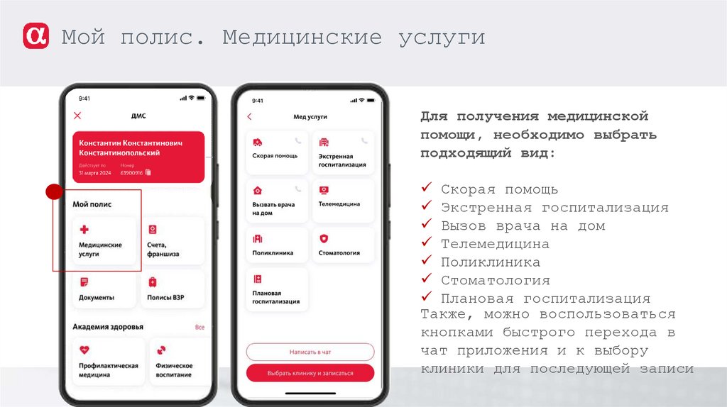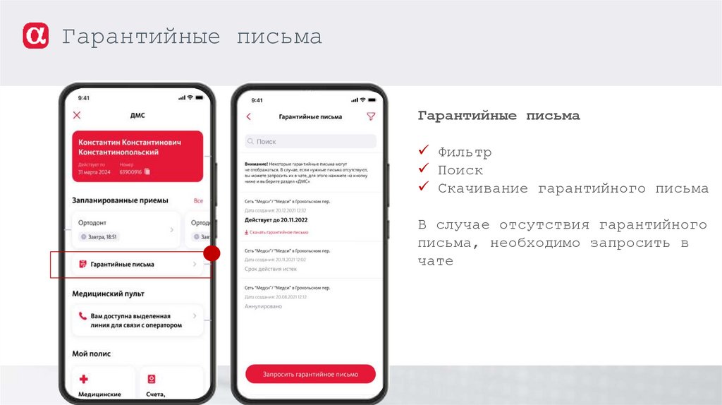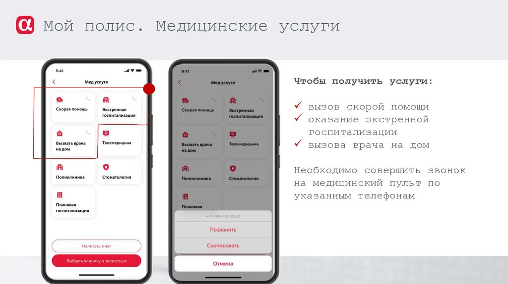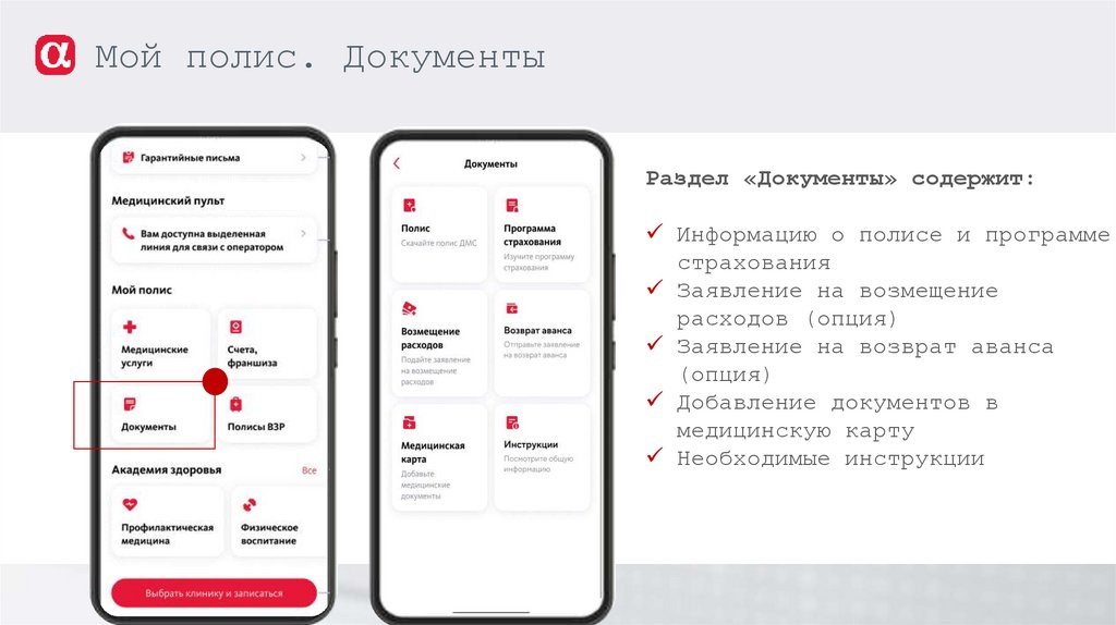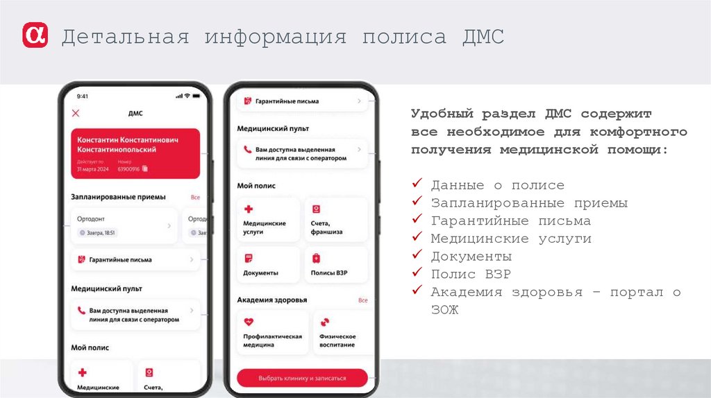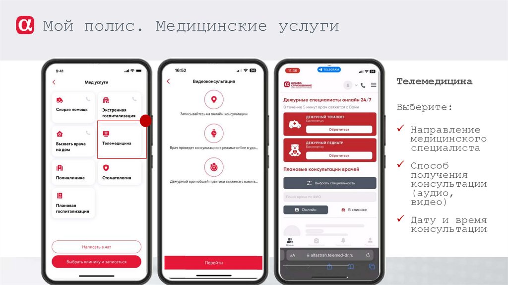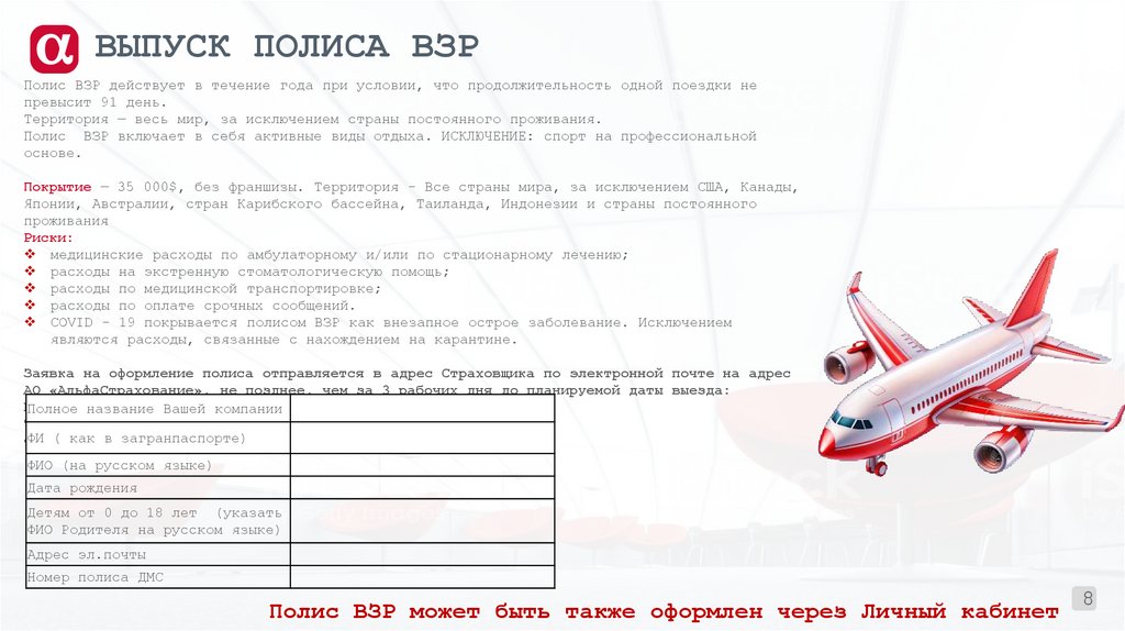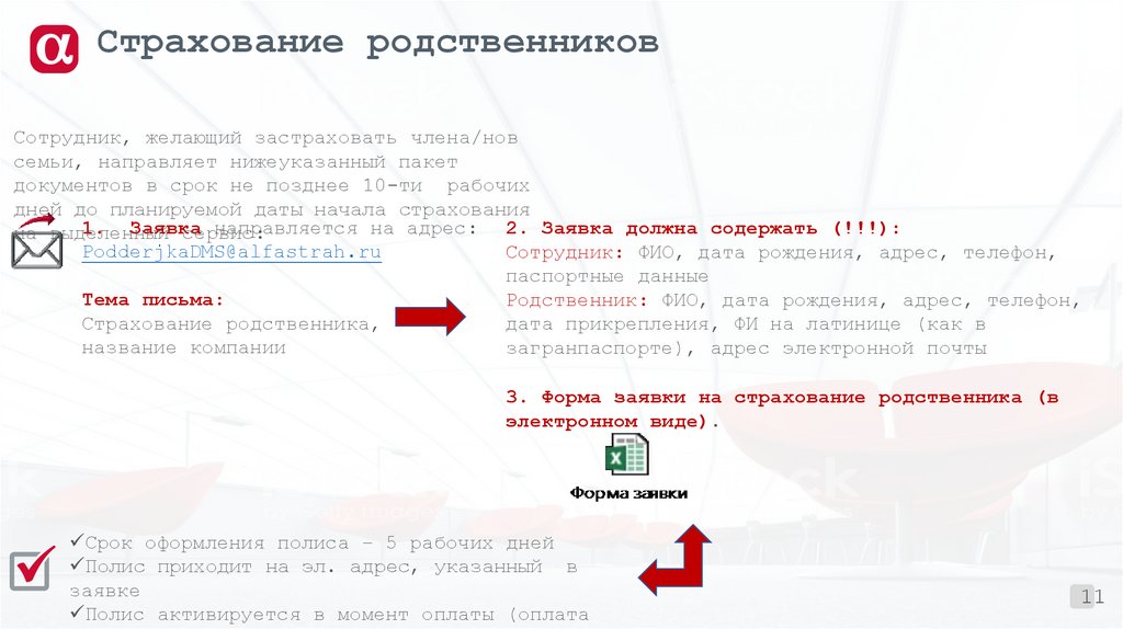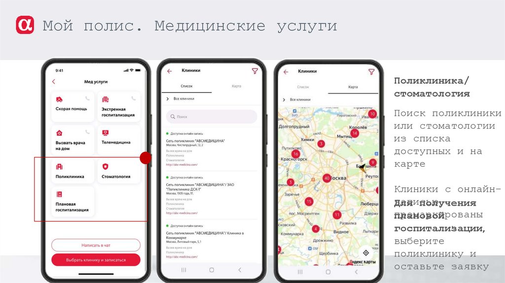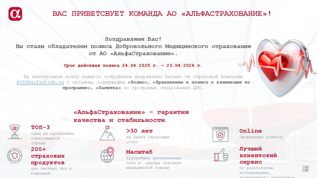 AVIS@alfastrah.ru с письмом, содержащим «Полис», «Приложение к полису с клиниками по