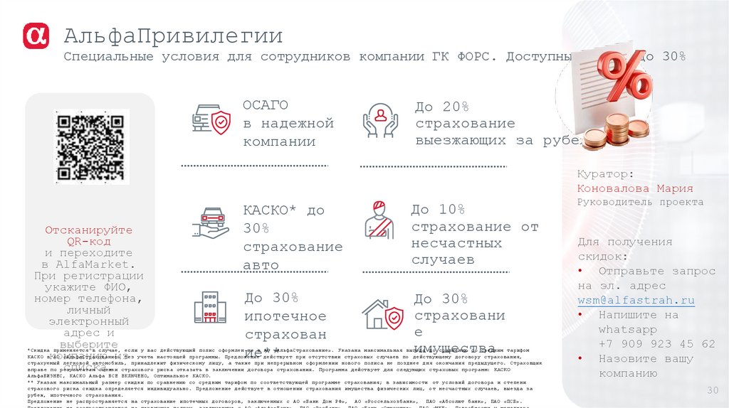 АльфаПривилегииСпециальные условия для сотрудников компании ГК ФОРС. Доступны скидки до 30%
