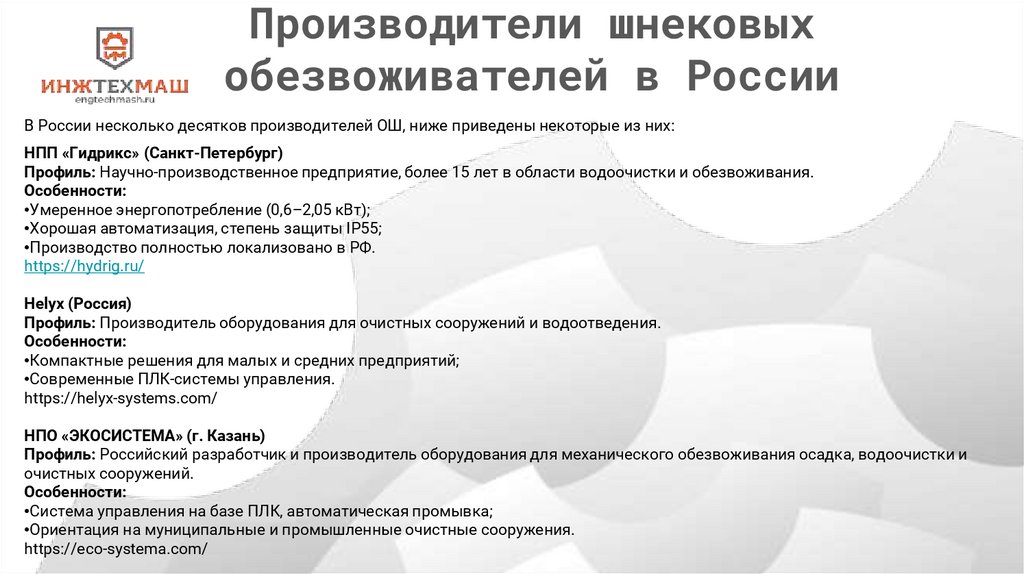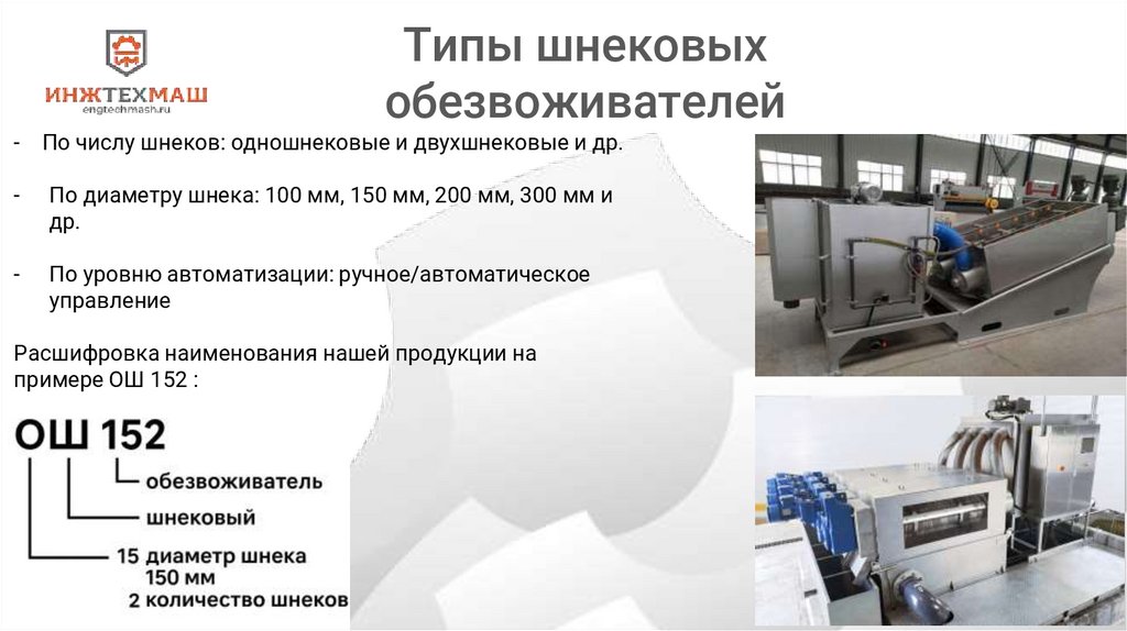 Типы шнековыхобезвоживателей