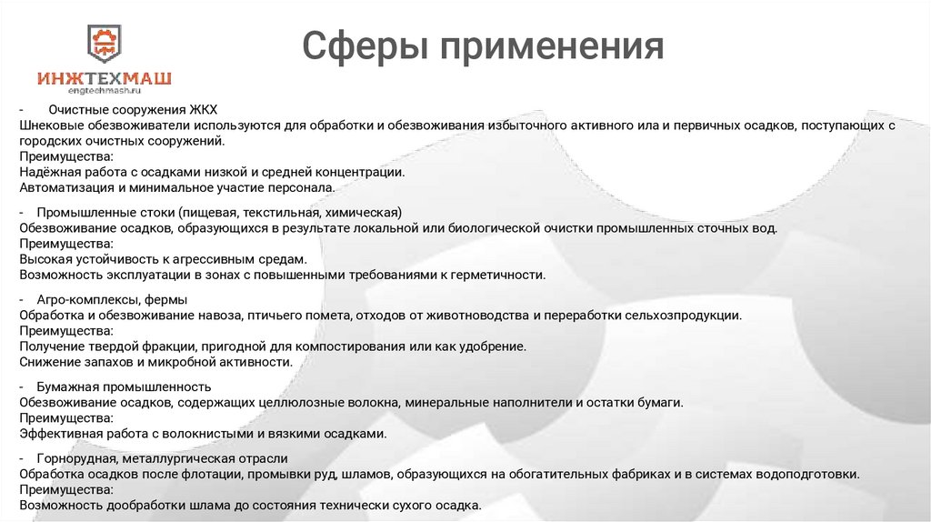 Сферы примененияОчистные сооружения ЖКХ