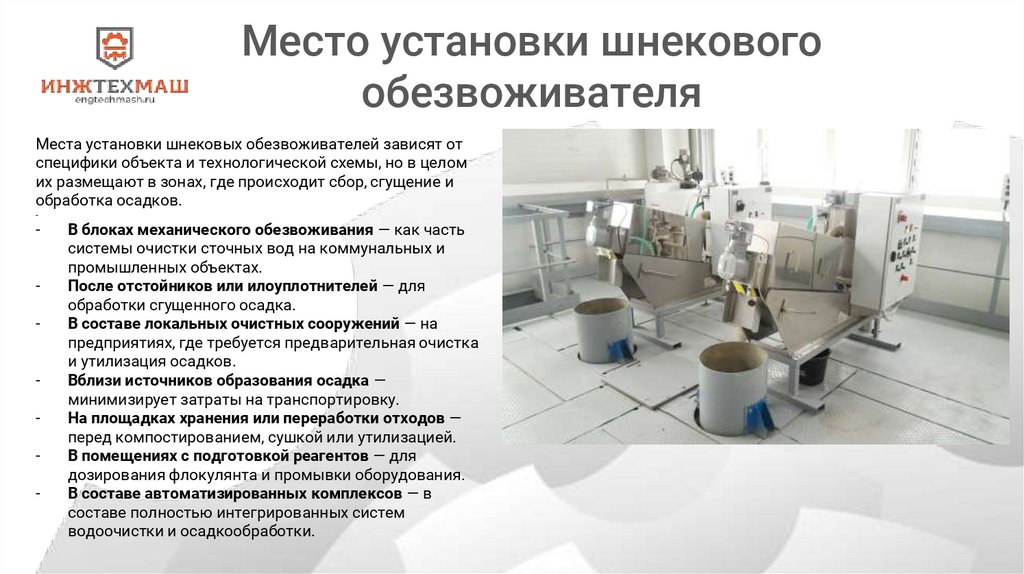 Места установки шнековых обезвоживателей зависят от