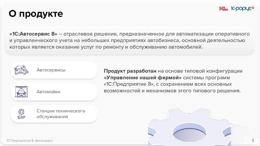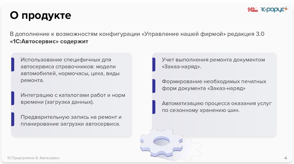 О продукте«1С:Автосервис 8» – отраслевое решение, предназначенное для автоматизации оперативного