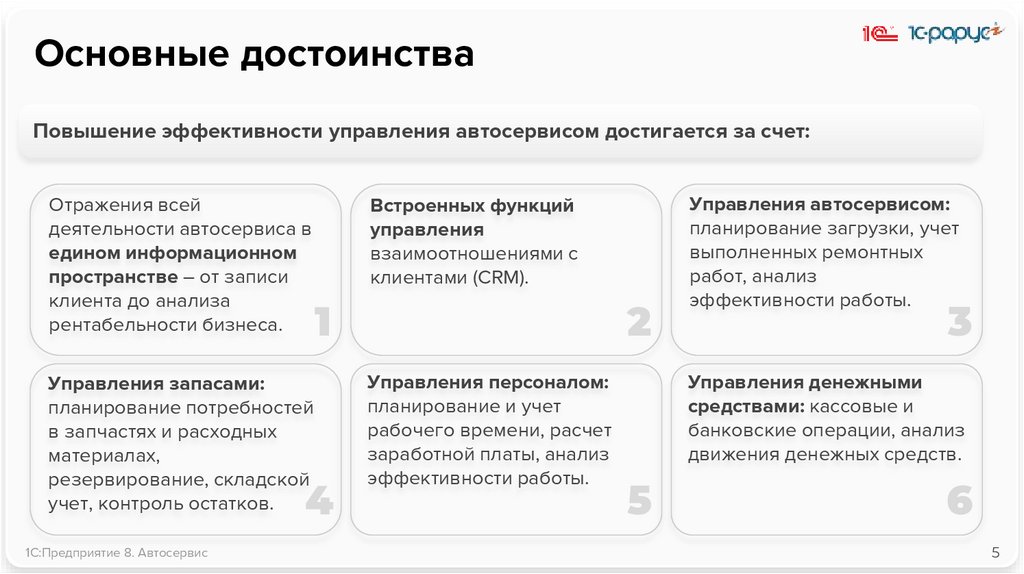 Основные достоинстваПовышение эффективности управления автосервисом достигается за счет: