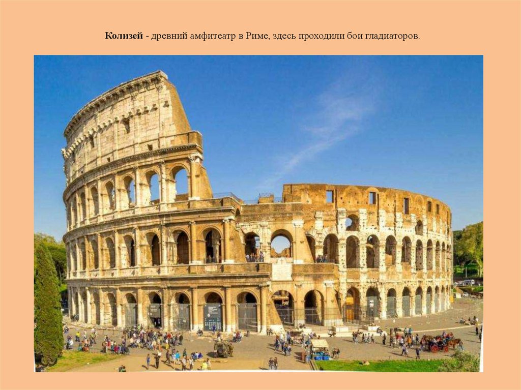 Колизей - древний амфитеатр в Риме, здесь проходили бои гладиаторов.6.
