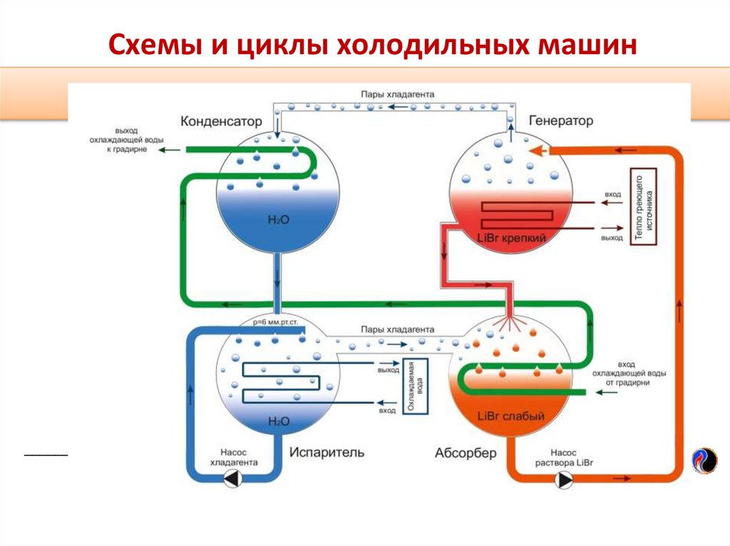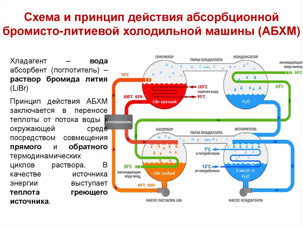 6. Схема и принцип действия абсорбционной бромисто-литиевой холодильной машины (АБХМ)