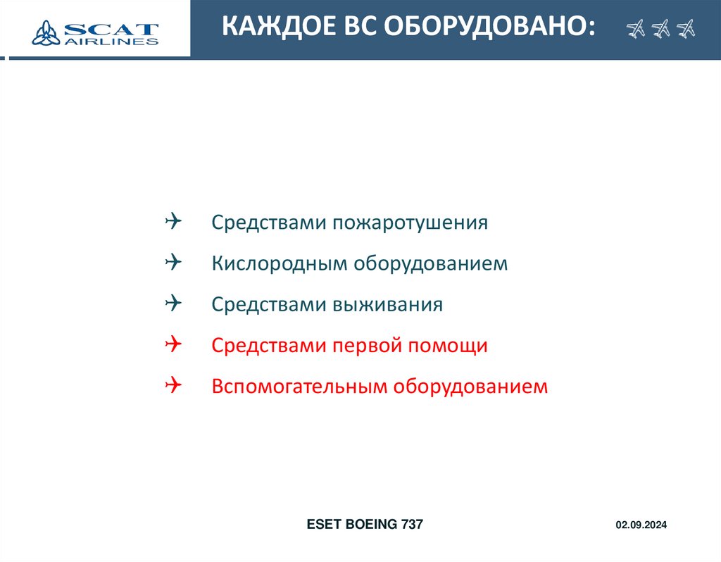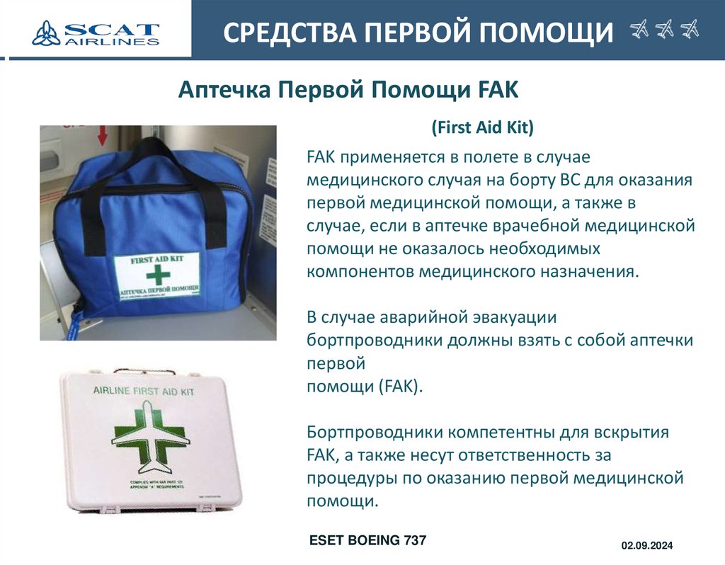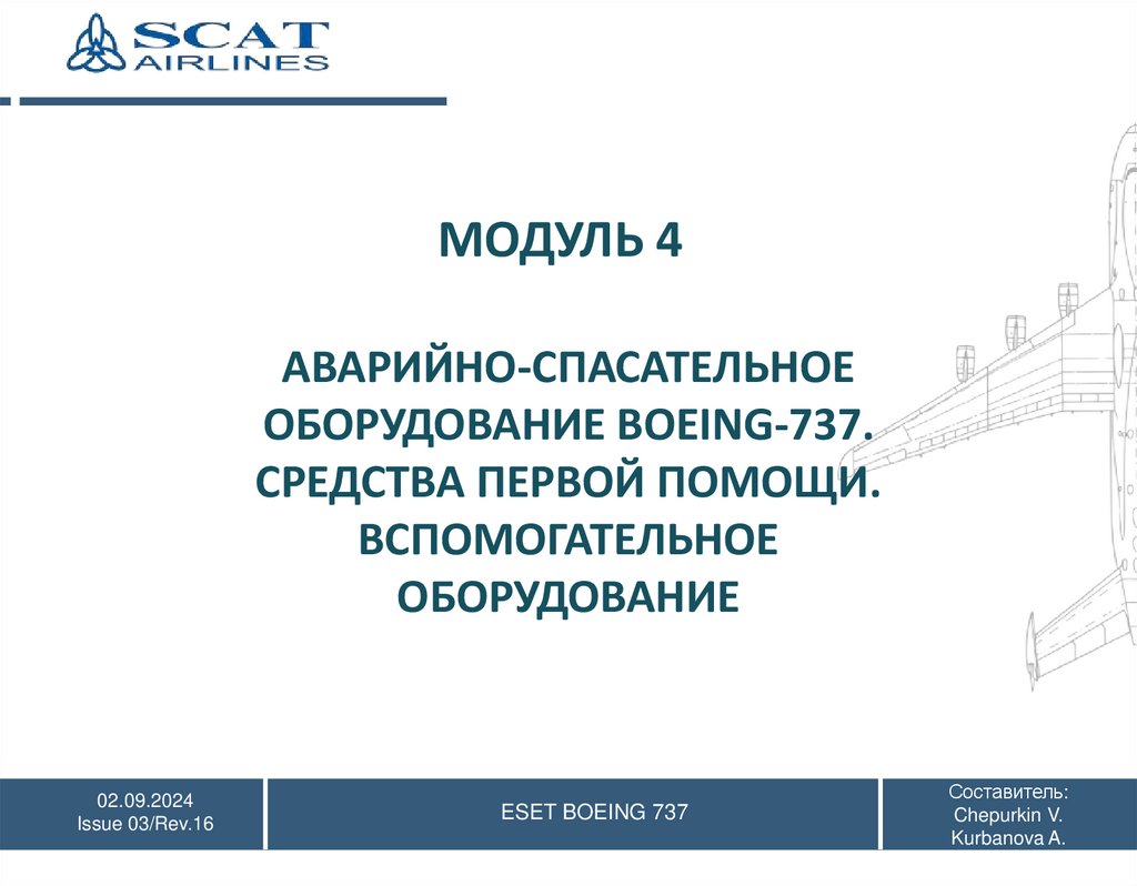 Аварийно-спасательное оборудование Boeing-737. Средства первой помощи. Вспомогательное оборудование (Модуль 4)