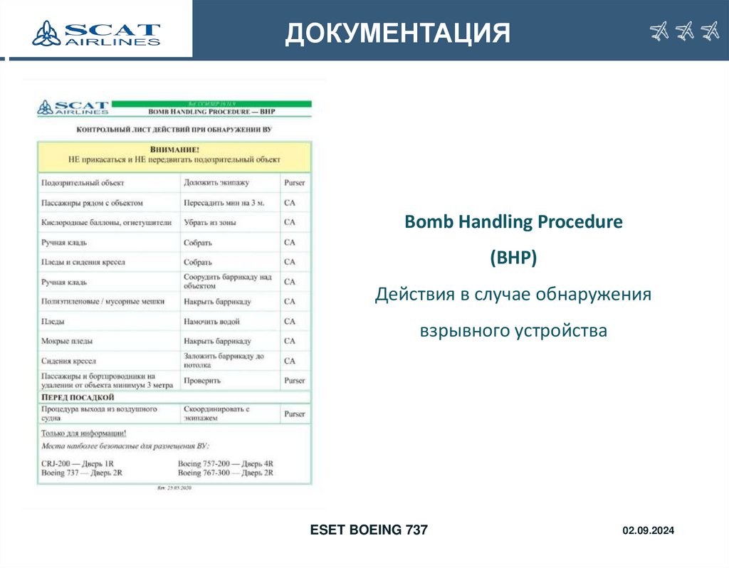 ДОКУМЕНТАЦИЯBomb Handling Procedure