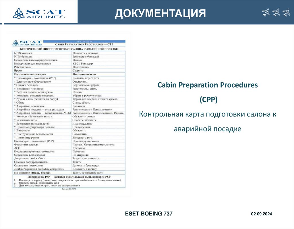 Cabin Preparation Procedures (CPP)/Контрольная карта подготовки
