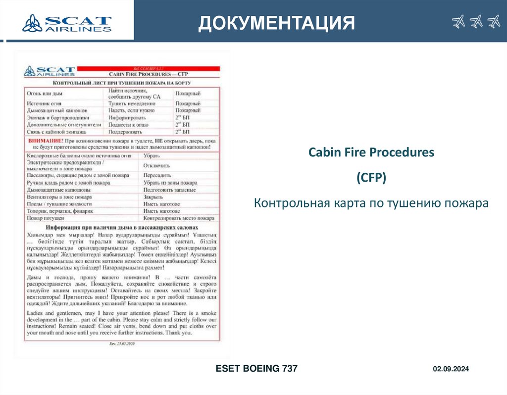 Cabin Fire Procedures (CFP)/Контрольная карта по тушению пожара