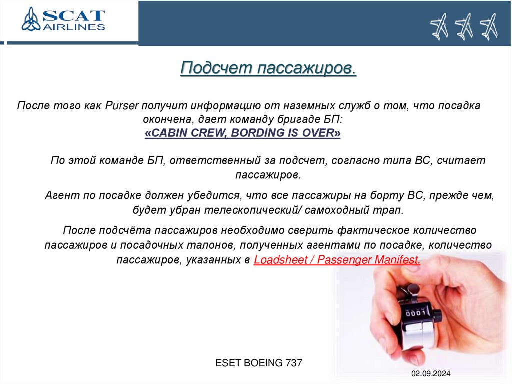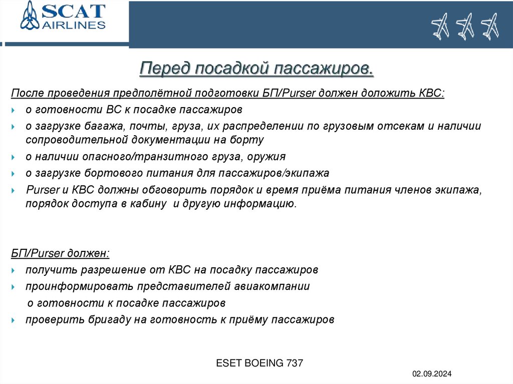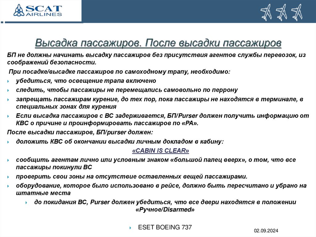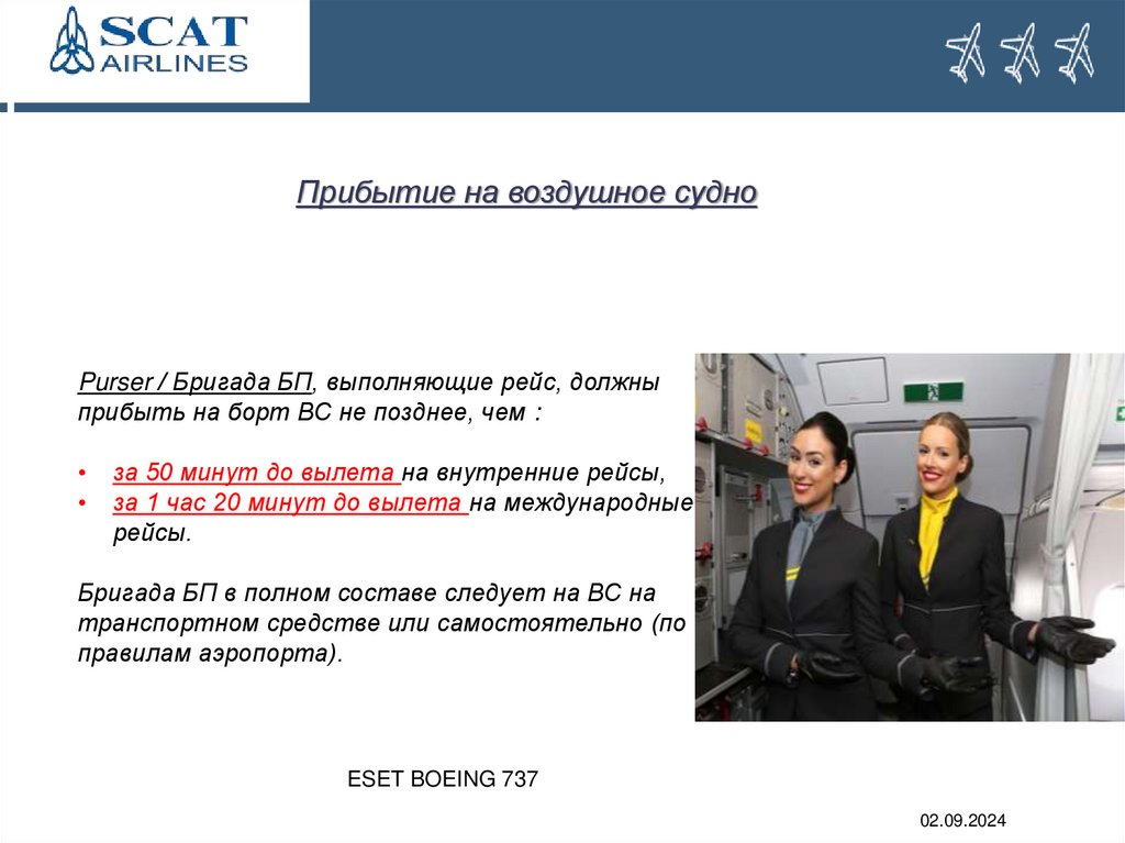 Прибытие на воздушное судноPurser / Бригада БП, выполняющие рейс, должны