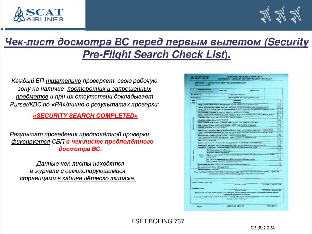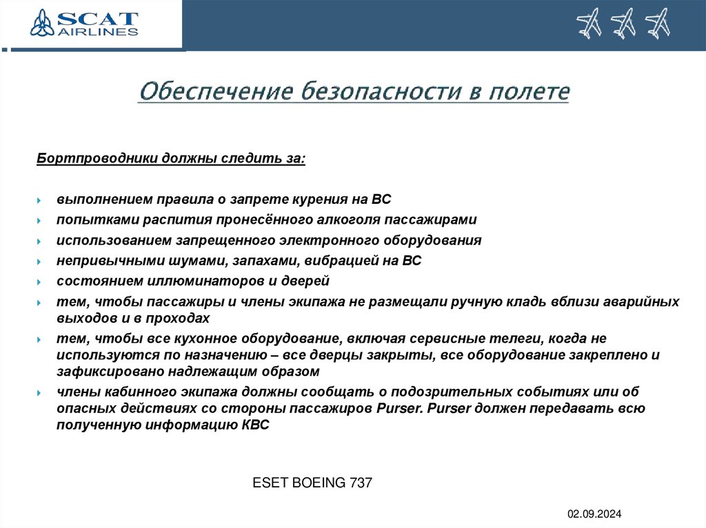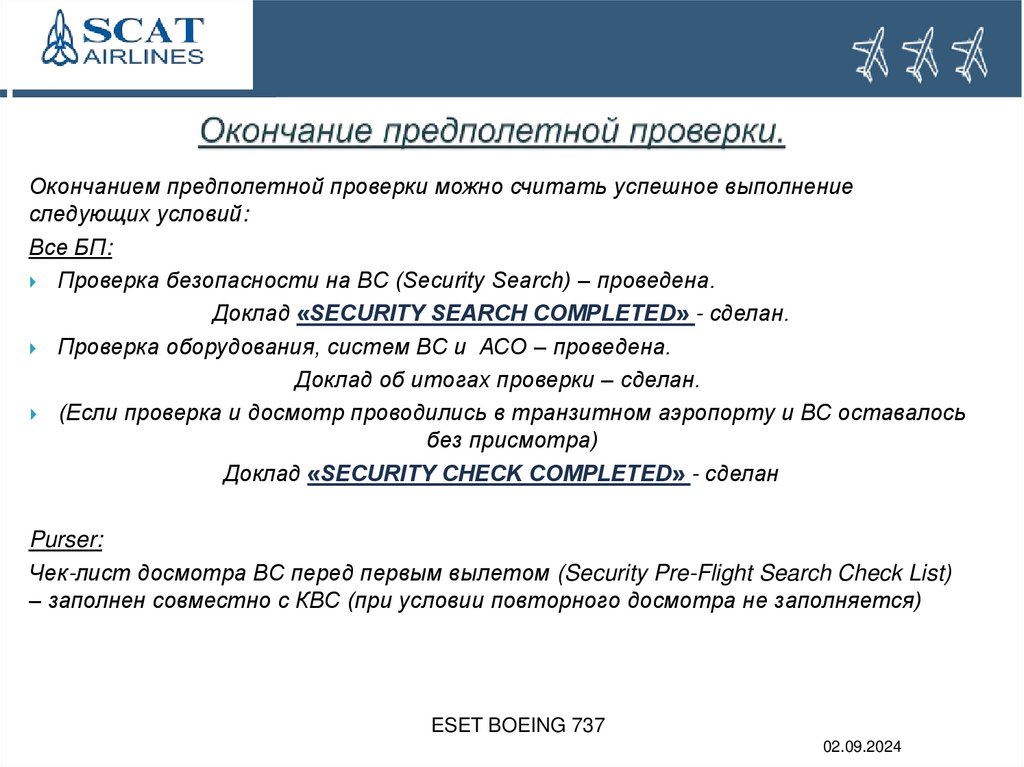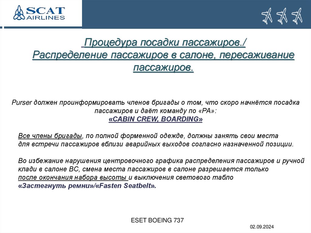 Прибытие на воздушное судноPurser / Бригада БП, выполняющие рейс, должны