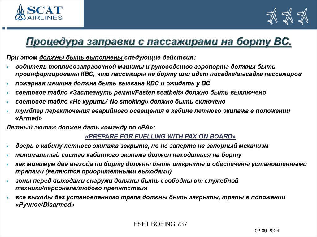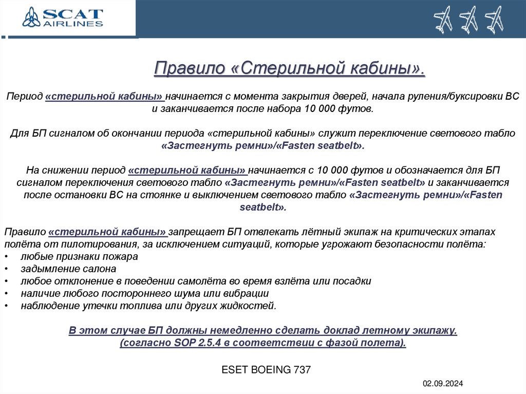 После посадки ВС.Все члены кабинного экипажа и пассажиры должны оставаться на своих местах до полной