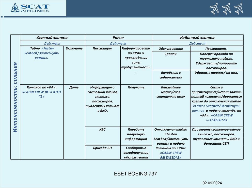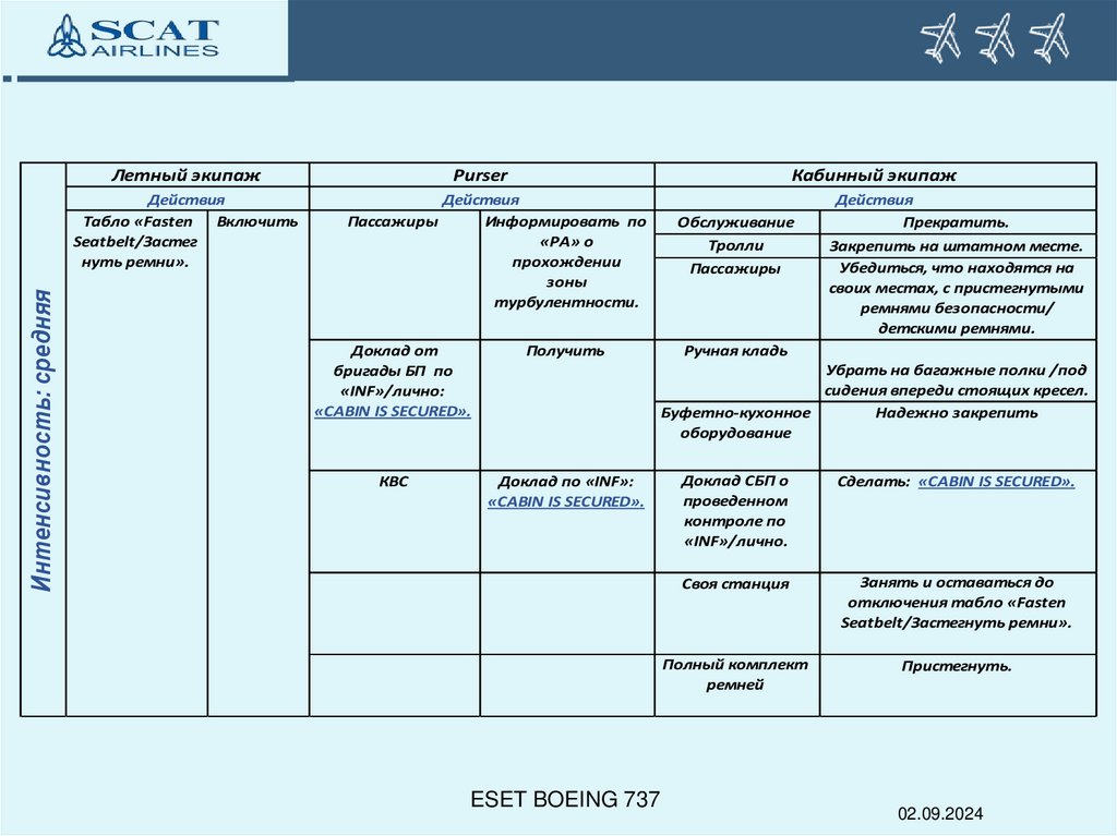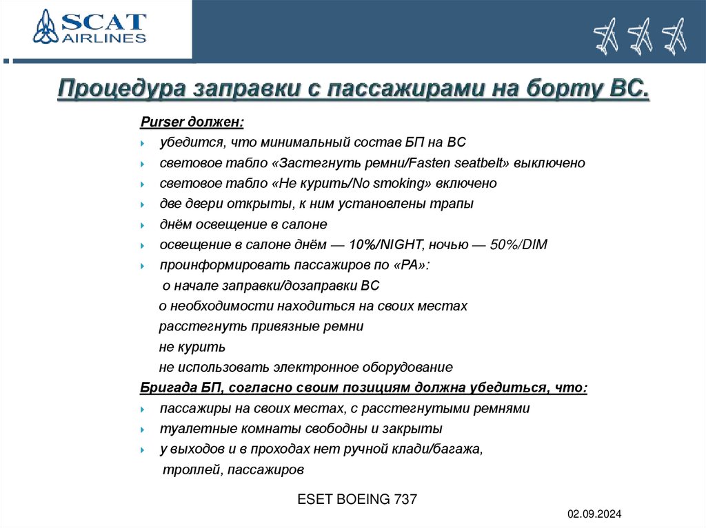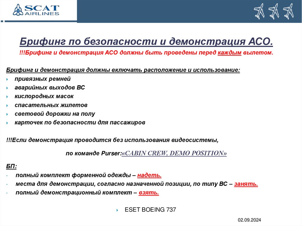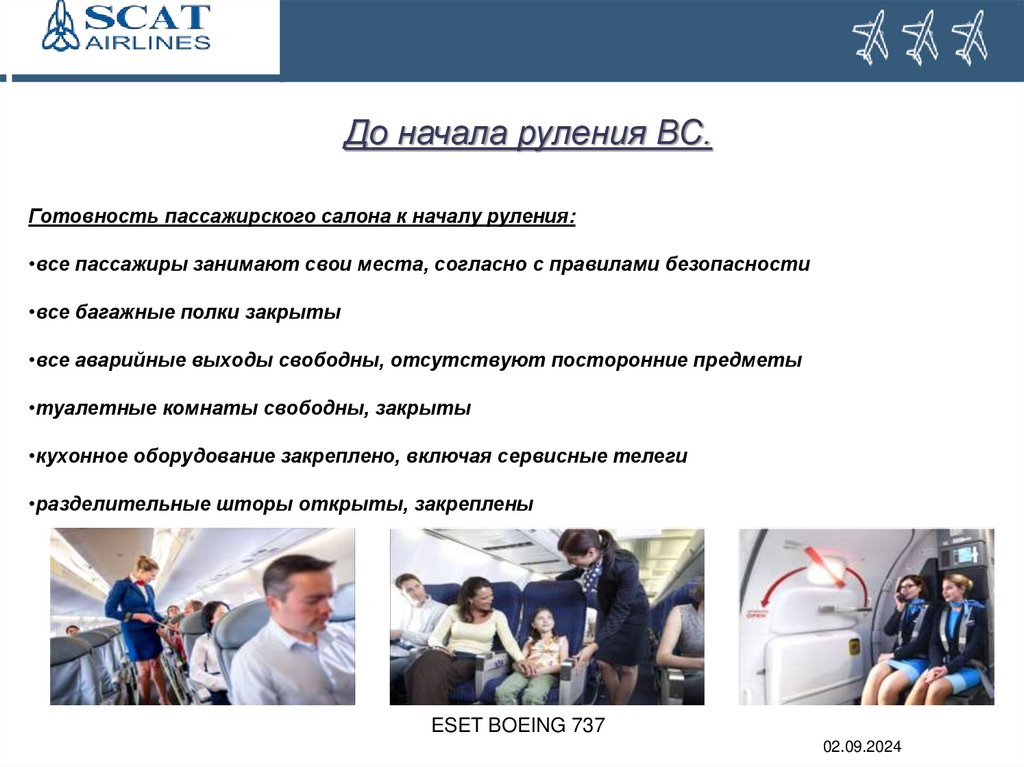 Как только ВС съедет с взлётной/посадочной полосы Purser должен проинформировать пассажиров