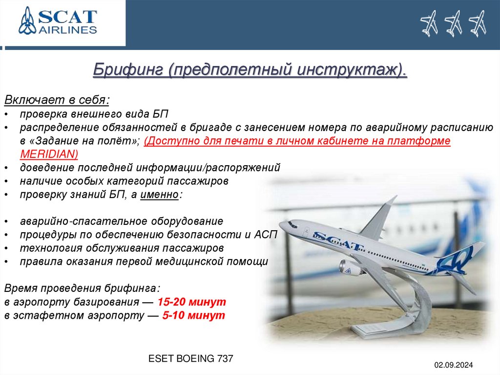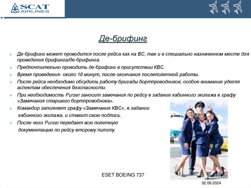 Де-брифинг может проводится после рейса как на ВС, так и в специально назначенном месте дляпроведения брифинга/де-брифинга.