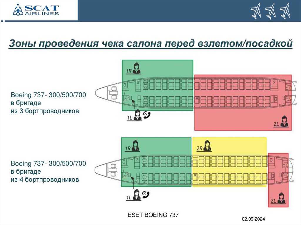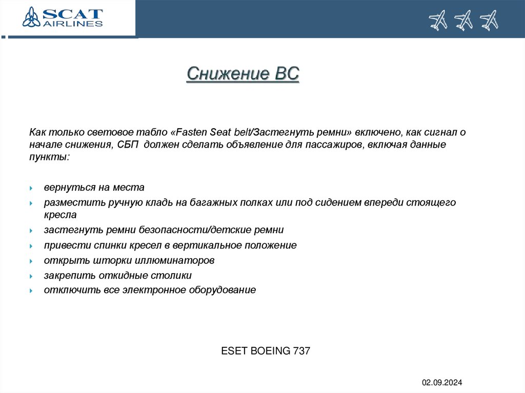 готовности салонов до начала движения ВС, перед взлётом и посадкой