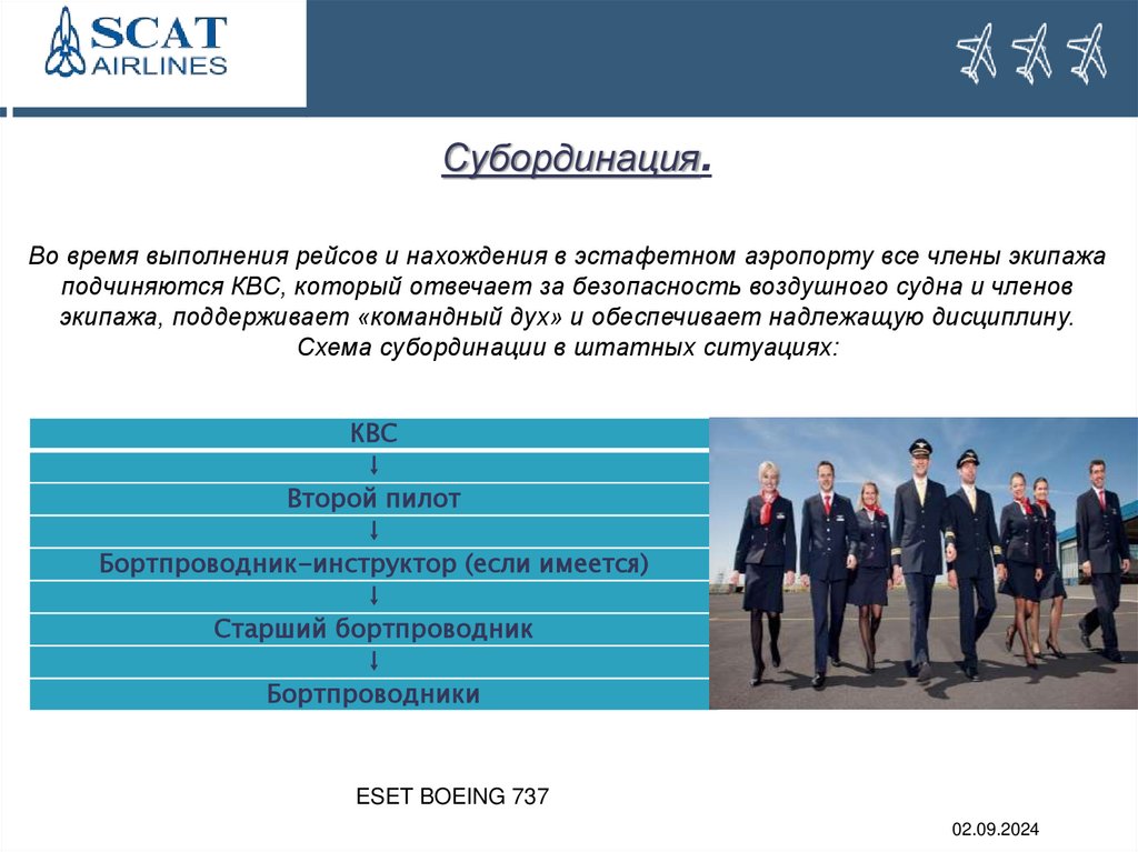 Субординация.Во время выполнения рейсов и нахождения в эстафетном аэропорту все члены экипажа
