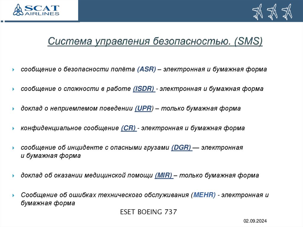 сообщение о безопасности полёта (ASR) – электронная и бумажная формасообщение о сложности в работе (ISDR) - электронная и бумажная форма