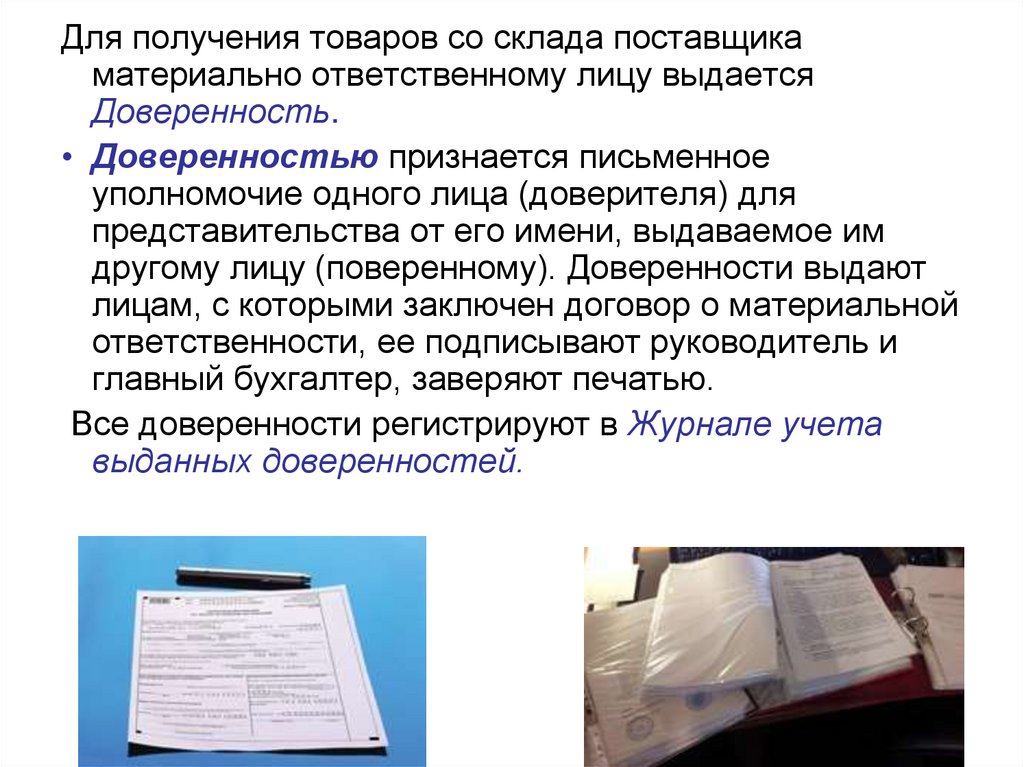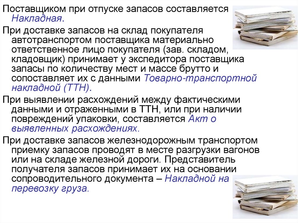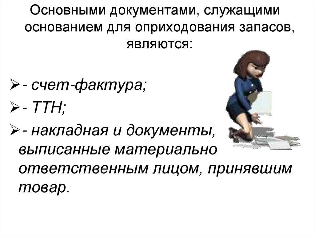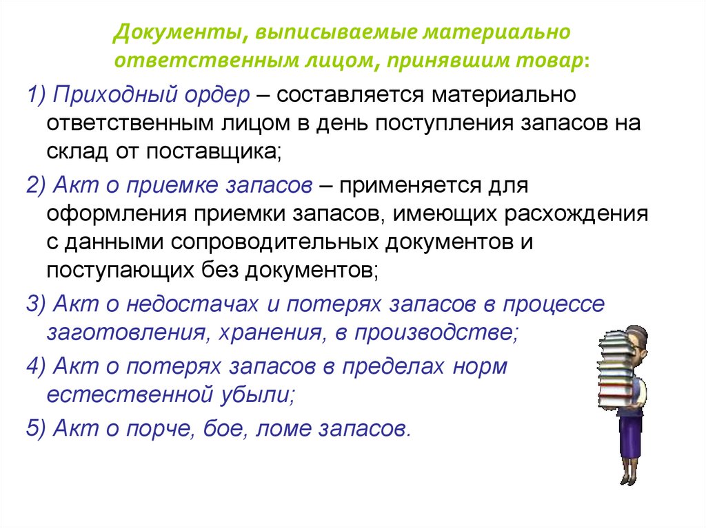 Документы, выписываемые материальноответственным лицом, принявшим товар: