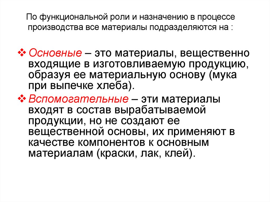5. По функциональной роли и назначению в процессе производства все материалы подразделяются на :