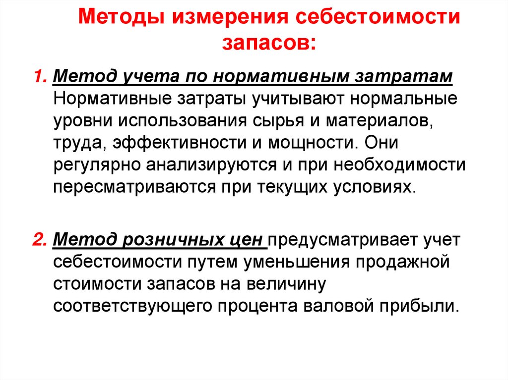1. Метод учета по нормативным затратамНормативные затраты учитывают нормальные