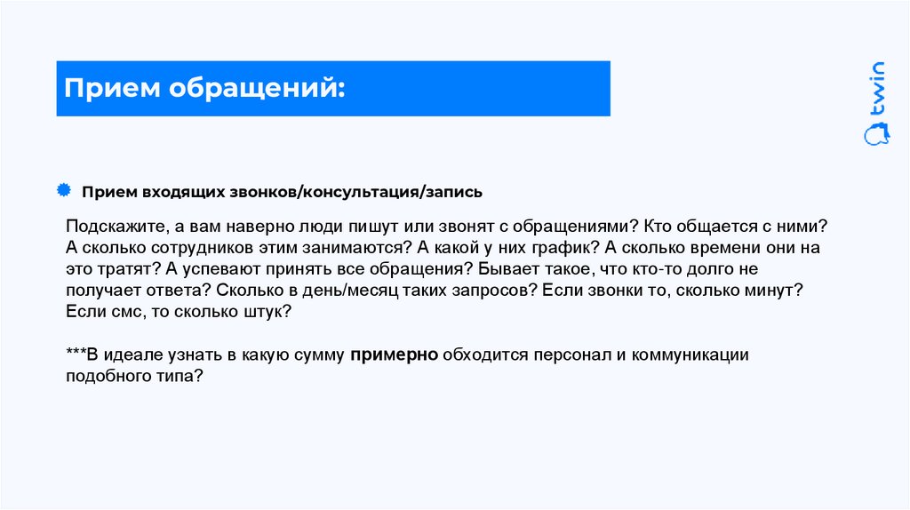 Прием входящих звонков/консультация/записьПодскажите, а вам наверно люди пишут или звонят с обращениями? Кто общается с ними?