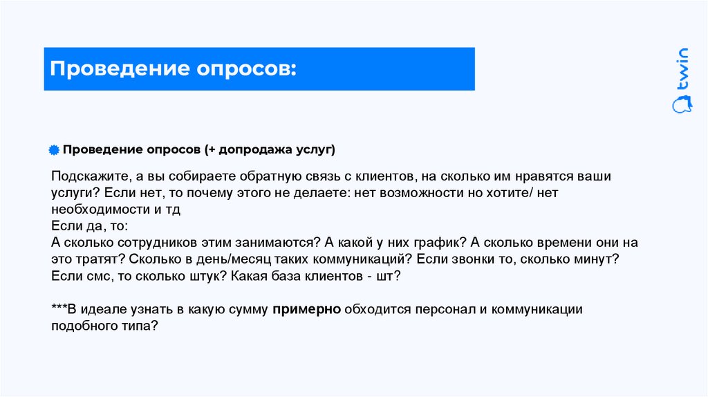 Проведение опросов (+ допродажа услуг)