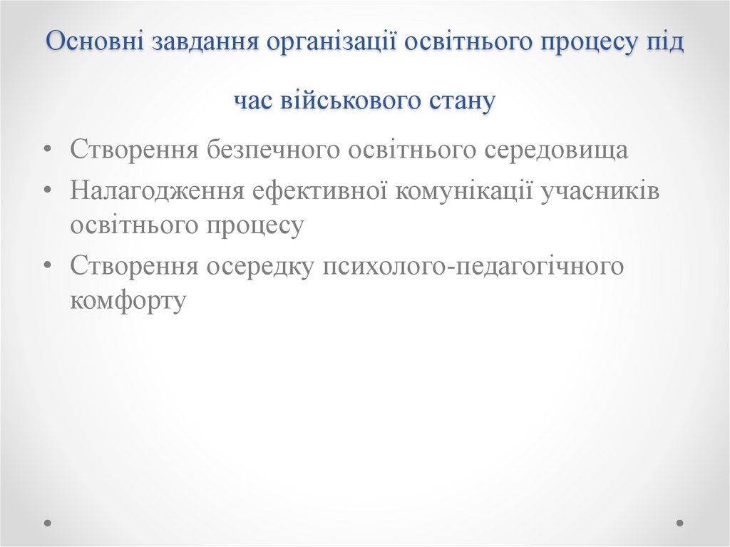 2. Основні завдання організації освітнього процесу під час військового стану