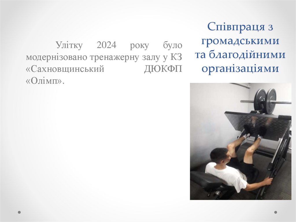 Улітку 2024 року буломодернізовано тренажерну залу у КЗ