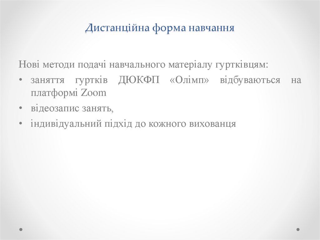 Нові методи подачі навчального матеріалу гуртківцям:• заняття гуртків ДЮКФП «Олімп» відбуваються на