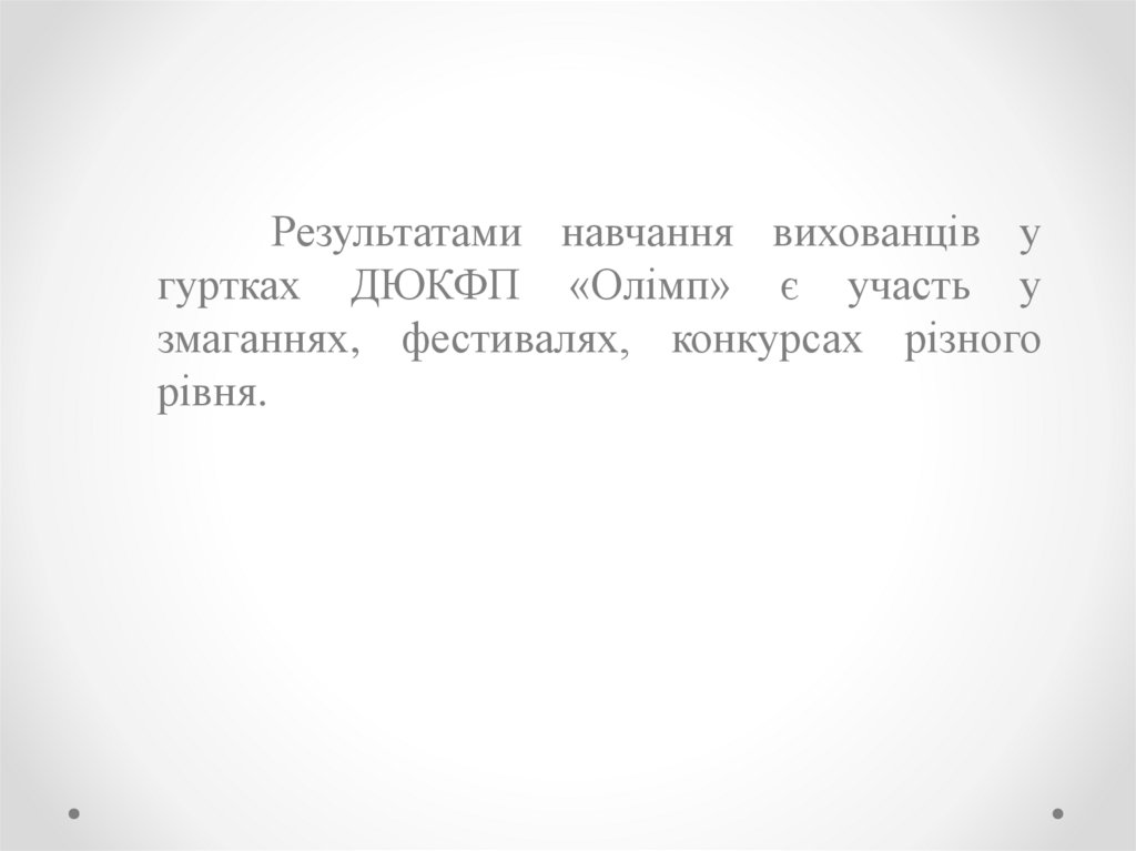 Результатами навчання вихованців угуртках ДЮКФП «Олімп» є участь у