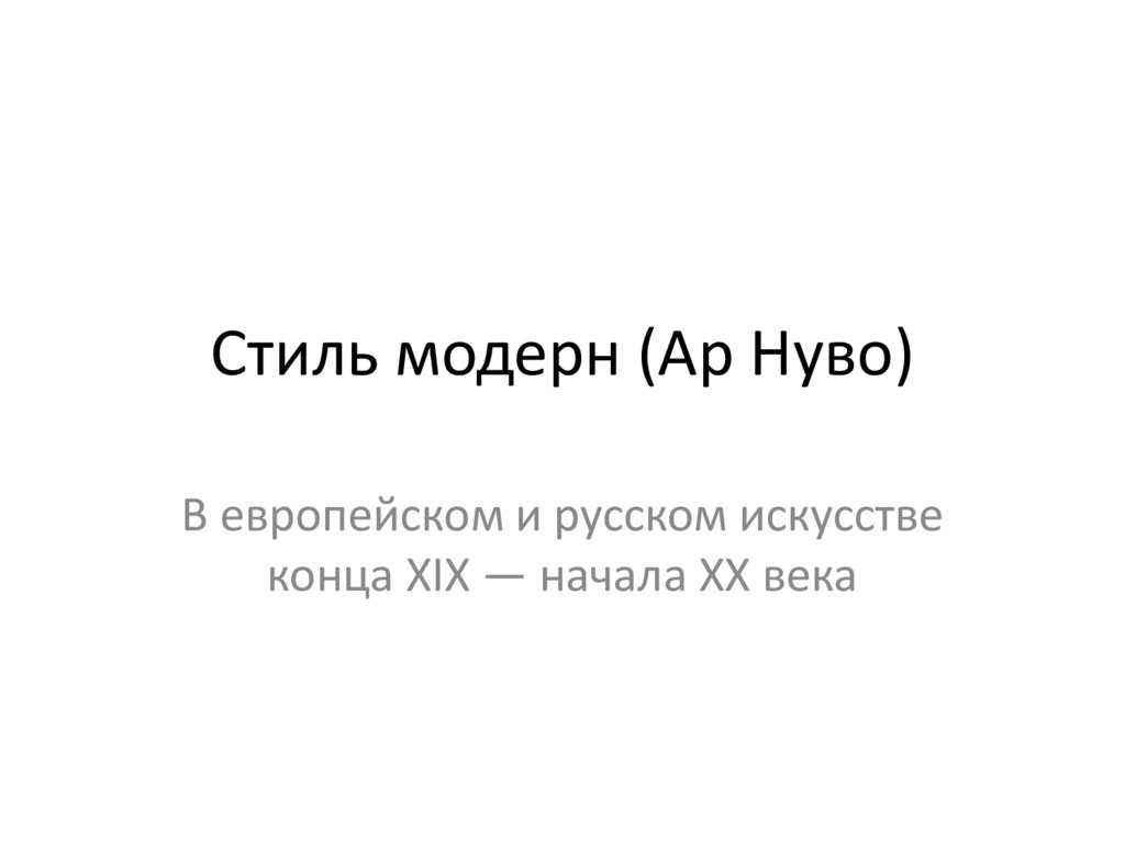 Стиль модерн (Ар Нуво)В европейском и русском искусстве