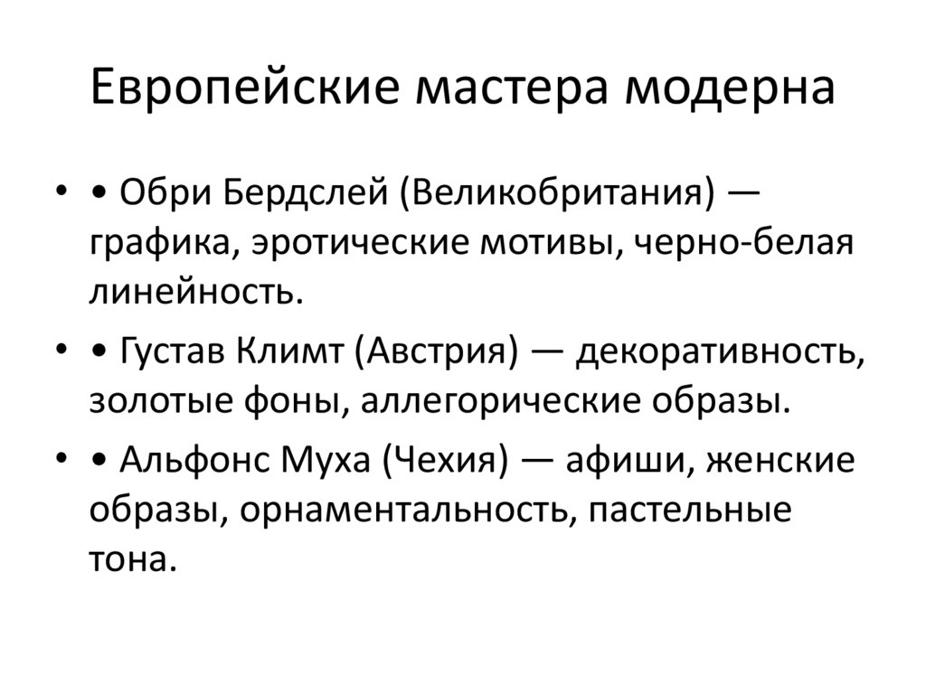 Европейские мастера модерна• • Обри Бердслей (Великобритания) —