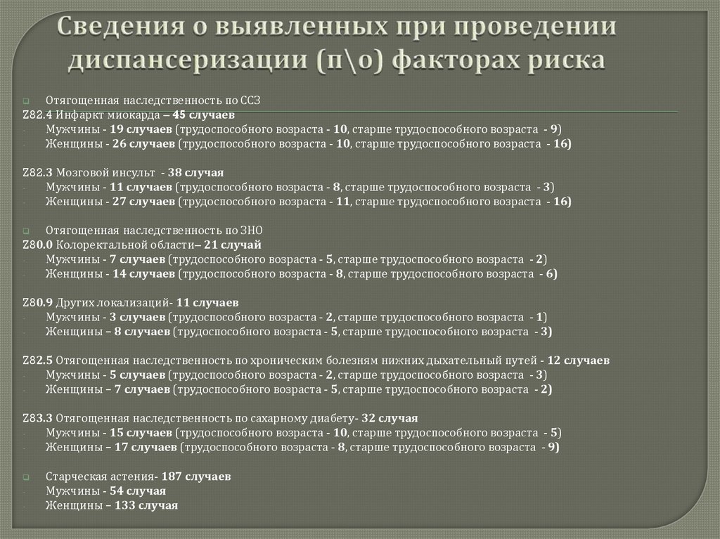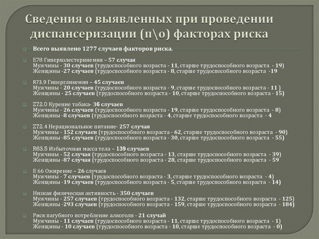 13. Сведения о выявленных при проведении диспансеризации (п\о) факторах риска