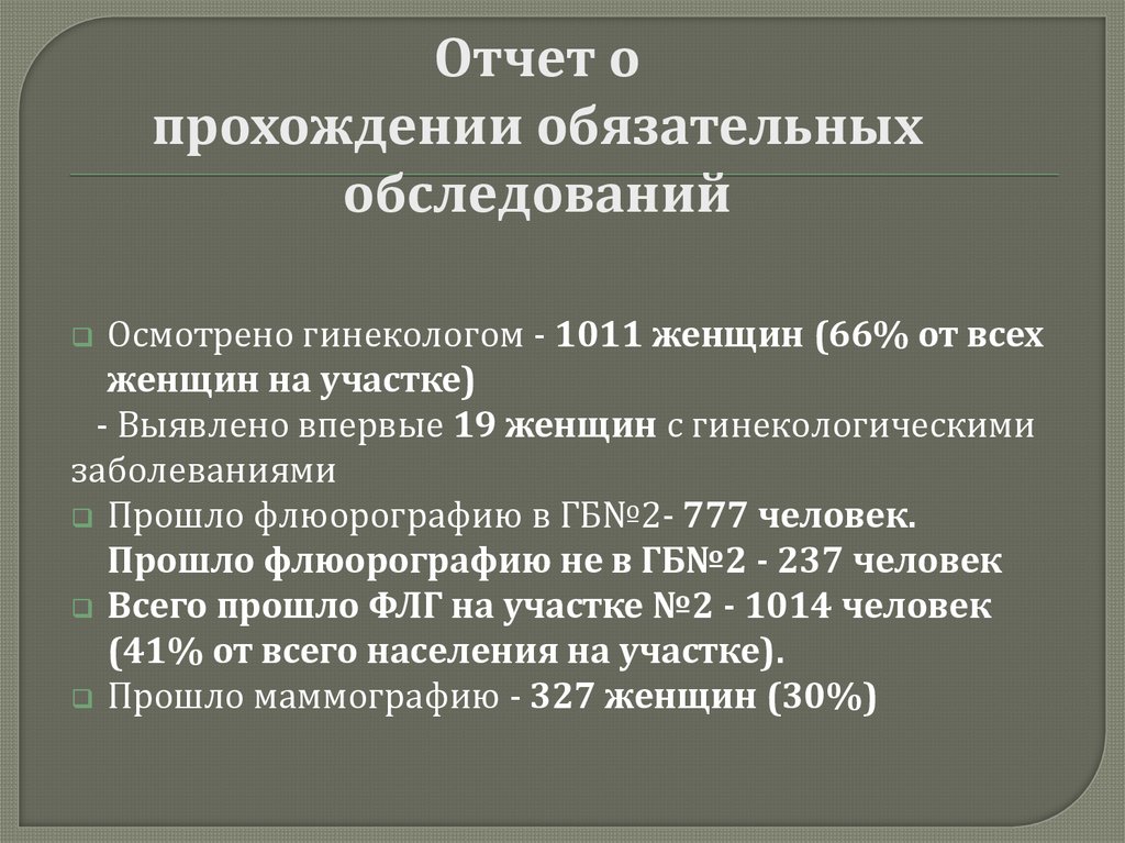 Осмотрено гинекологом - 1011 женщин (66% от всех