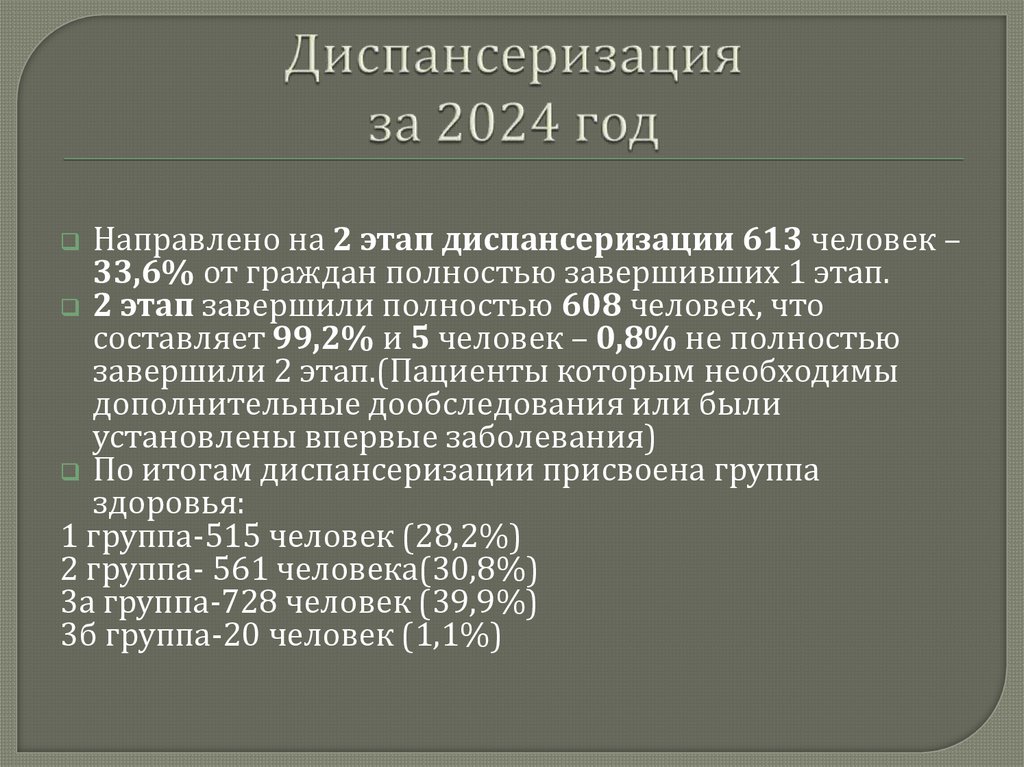 Направлено на 2 этап диспансеризации 613 человек –33,6% от граждан полностью завершивших 1 этап.