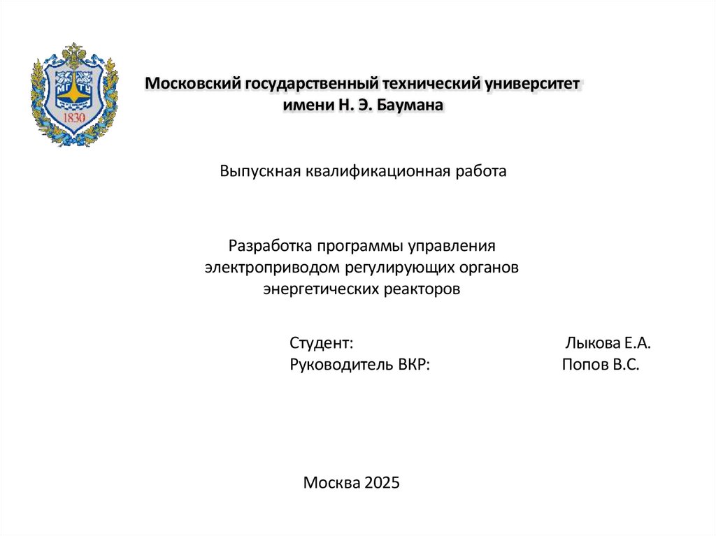 Разработка программы управления электроприводом регулирующих органов энергетических реакторов