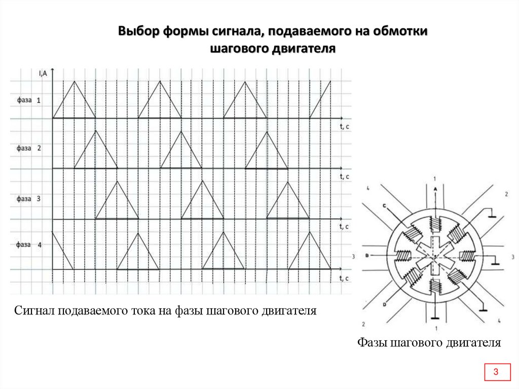 3. Выбор формы сигнала, подаваемого на обмотки шагового двигателя