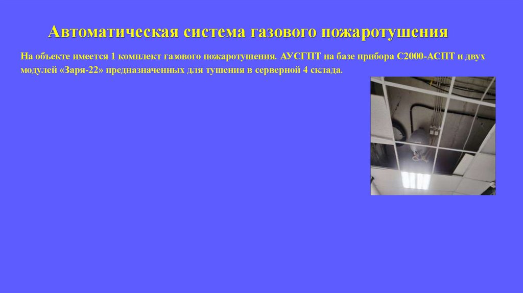 - автоматическая установка системы газового пожаротушения (АУСГПТ);