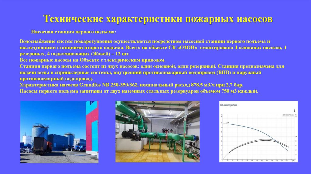 Технические характеристики пожарных насосовНасосная станция первого подъема: