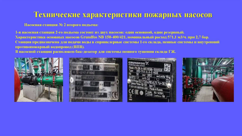 Технические характеристики пожарных насосовНасосная станция № 2 второго подъема: