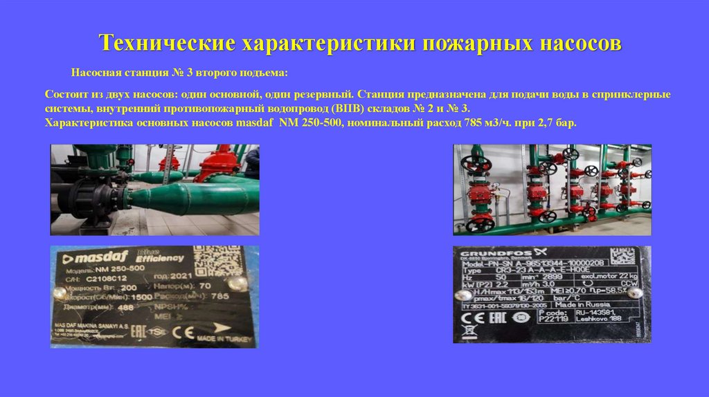 Технические характеристики пожарных насосовНасосная станция № 3 второго подъема: